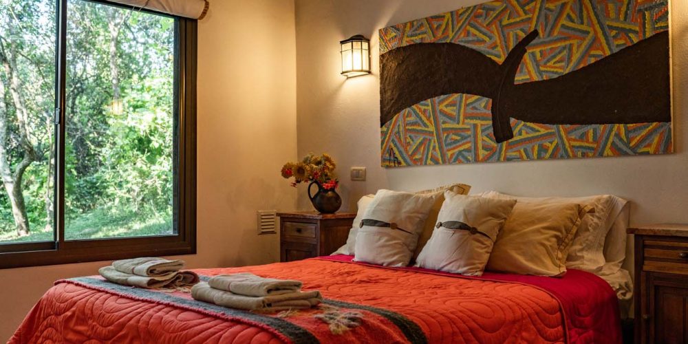 Cabaña MOLLE para 2, 3, 4, 5 personas (60 m2 cubiertos + galería de 30 m2). Un dormitorio matrimonial. Cocina/comedor y estar c/camas de 1 plaza. Cochera cubierta. Amplia galería con parrilla.